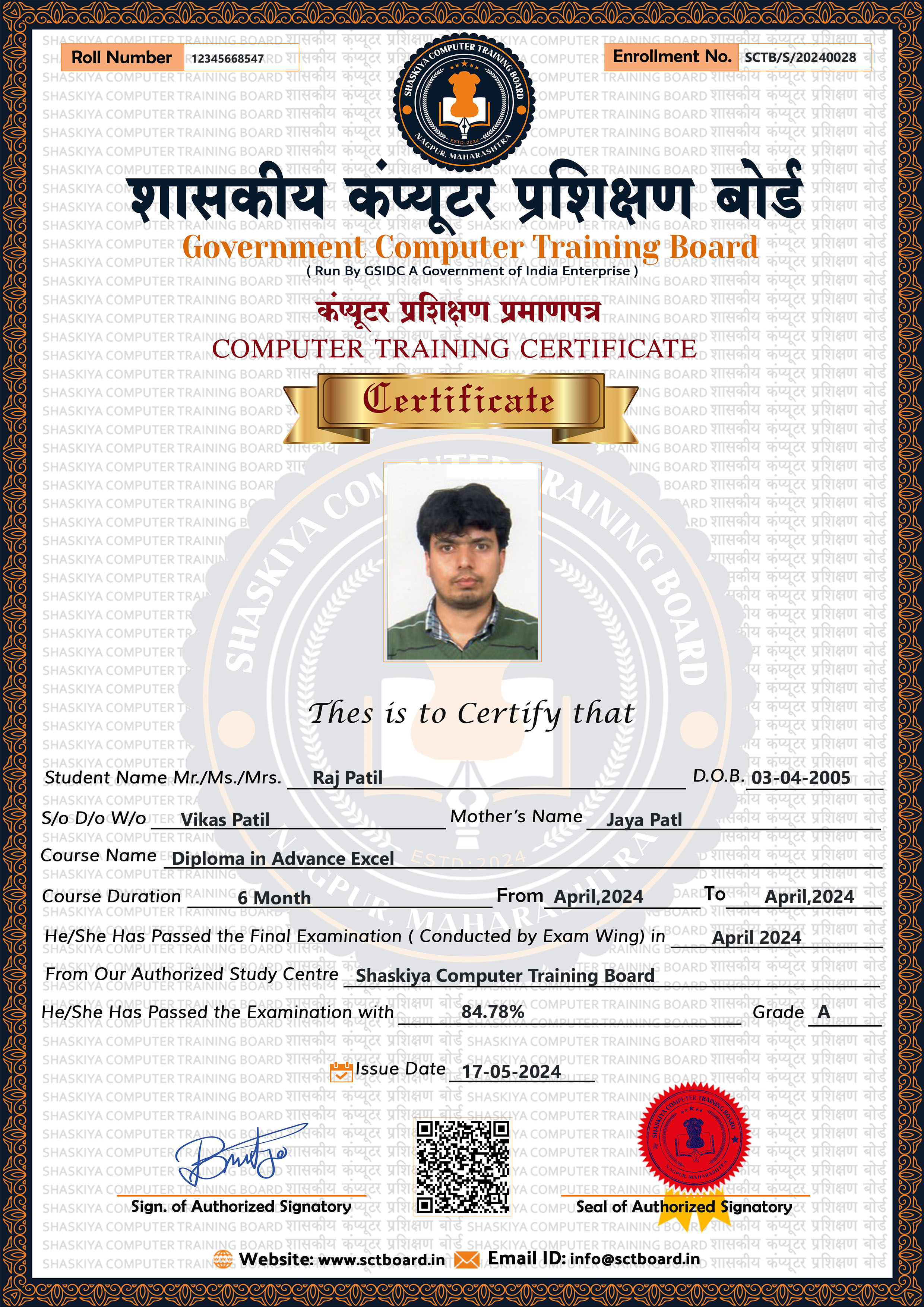 3. Sample Marksheet